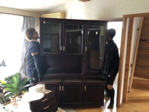 食器棚を運ぶのに、女性スタッフが収納されてる皿などを分別してくれていました😊