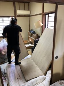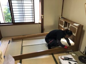 動線上どうしても運び出せない、大きな衣装棚とベッドは、その場で解体して行きます😊